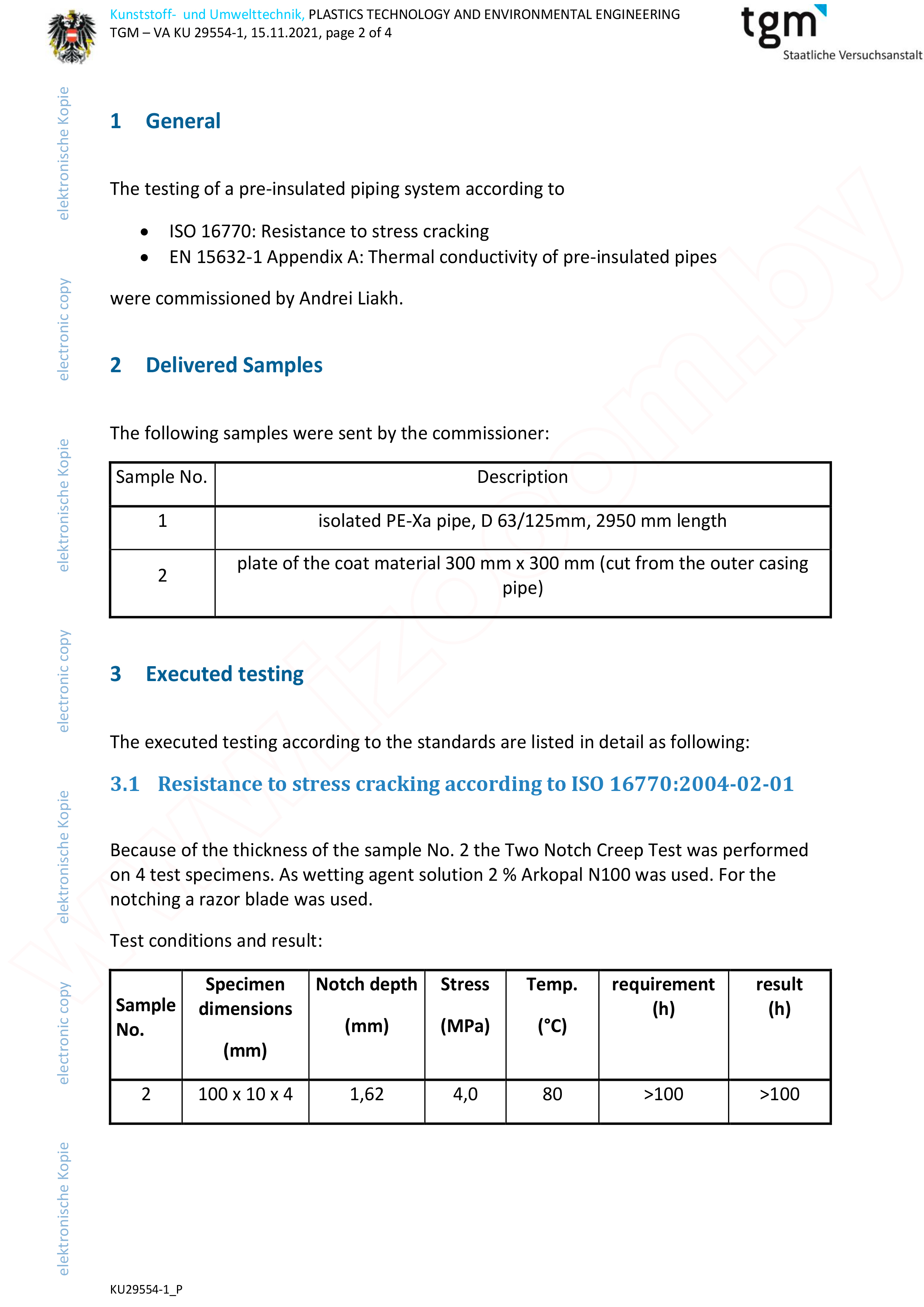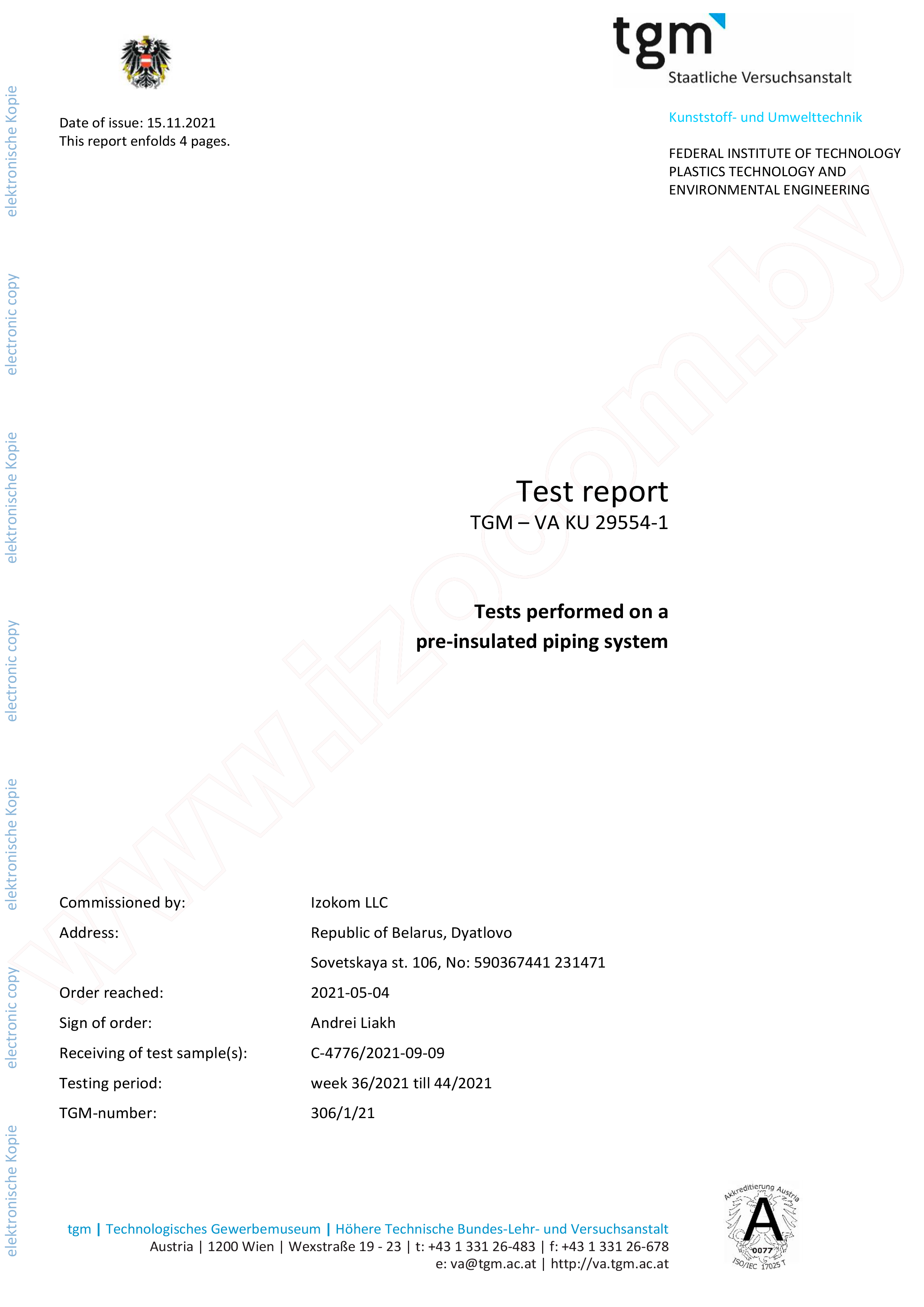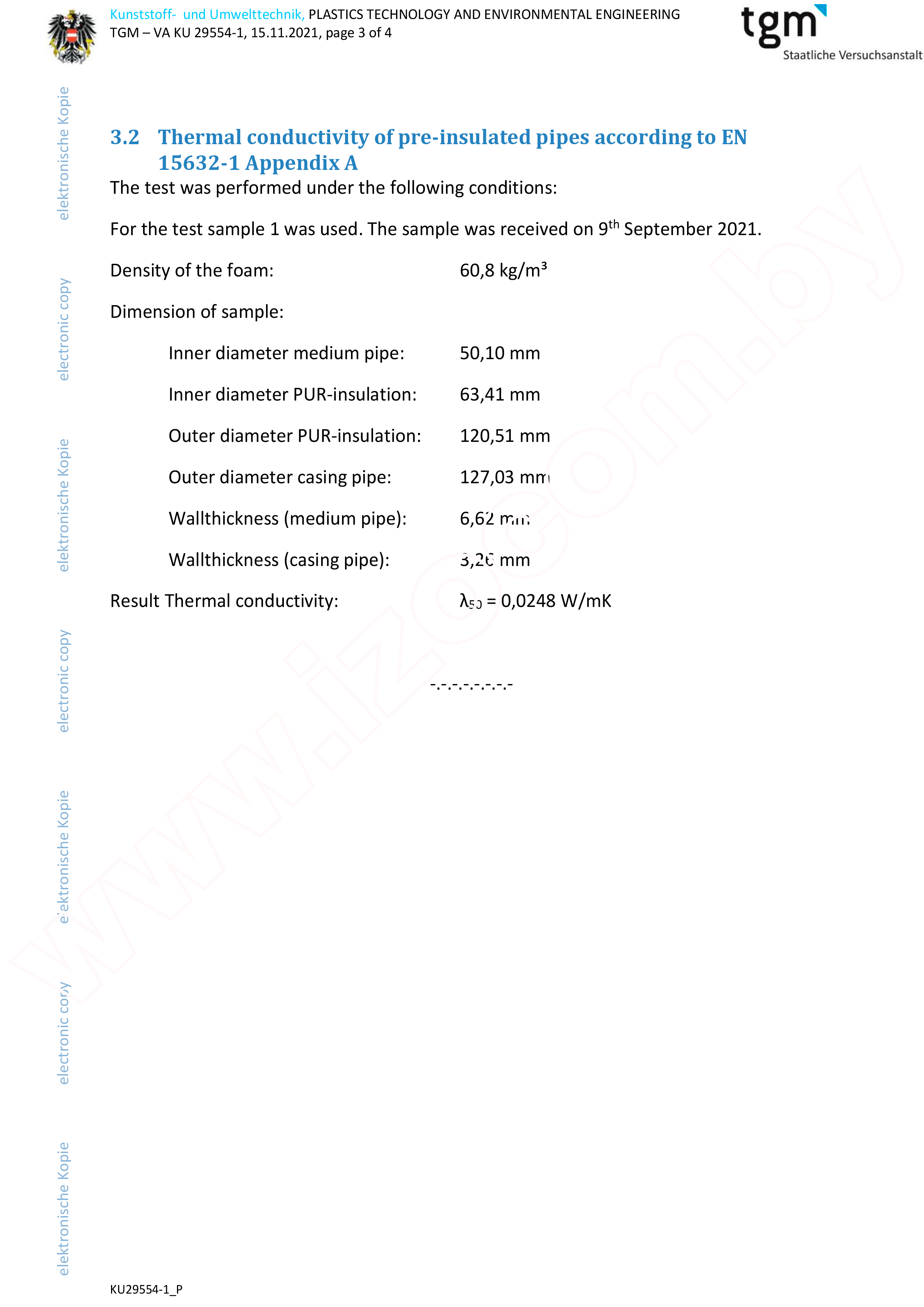 По результатам испытаний теплоизоляции ГПИ-трубы методом трубы (EN ISO 8497:1996) коэффициент теплопроводности при плотности 60,8 кг/м3 составил λ50 0,0258 Вт/(м·К).